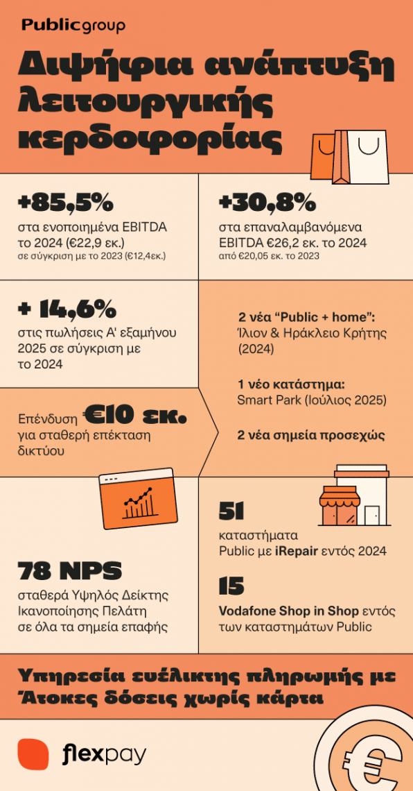 Με σαφές στρατηγικό πλάνο και έμφαση στην εμπειρία του πελάτη το Public Group συνεχίζει και το 2025 να επενδύει μεθοδικά στην ανάπτυξη των φυσικών καταστημάτων του, καθώς και σε υπηρεσίες και συνεργασίες που δημιουργούν αξία και απαντούν στις σύγχρονες ανάγκες του καταναλωτή.